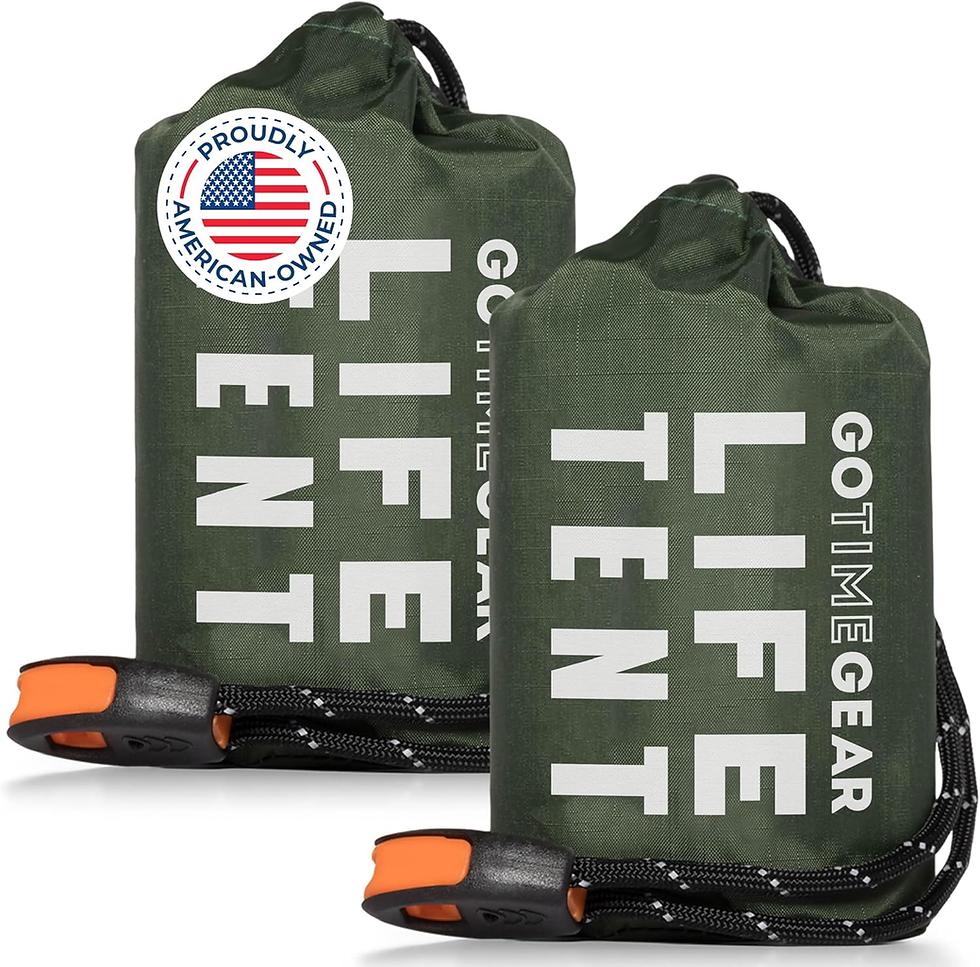 Go Time Gear Survival Life Tent • 2 Person Mylar Emergency Shelter Tube Tent + P
